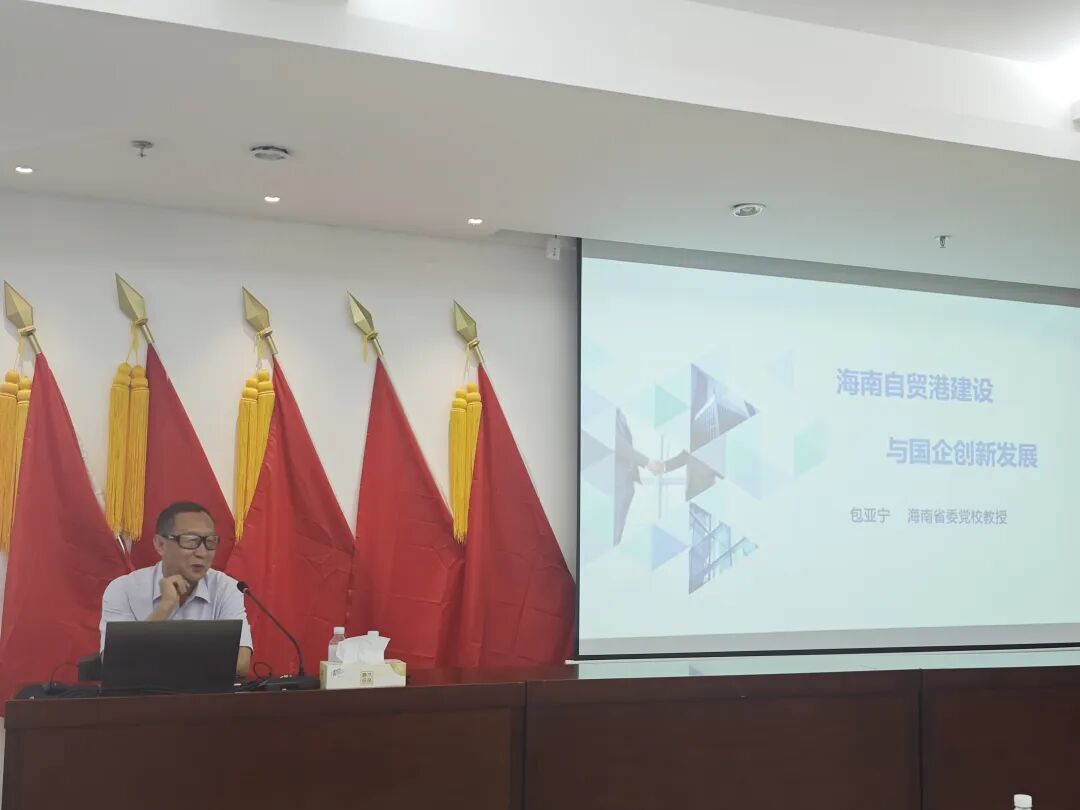 本次培訓(xùn)邀請(qǐng)?jiān)D鲜∥h校副校長(zhǎng)、海南大學(xué)碩士生導(dǎo)師包亞寧教授做專題授課。包教授圍繞“全面準(zhǔn)確理解國(guó)有企業(yè)在自貿(mào)港建設(shè)中的功能與作用”“‘封關(guān)’政策制度體系推進(jìn)于社會(huì)生活的機(jī)遇與挑戰(zhàn)”“充分認(rèn)識(shí)自貿(mào)港建設(shè)的走勢(shì),不斷提升企業(yè)的競(jìng)爭(zhēng)發(fā)展能力”等內(nèi)容開(kāi)展闡釋,并引入多個(gè)企業(yè)實(shí)例,不僅讓廣大干部職工對(duì)自貿(mào)港政策的理解更透徹,也為后續(xù)謀劃 “十五五”時(shí)期高質(zhì)量發(fā)展工作筑牢了基礎(chǔ)。