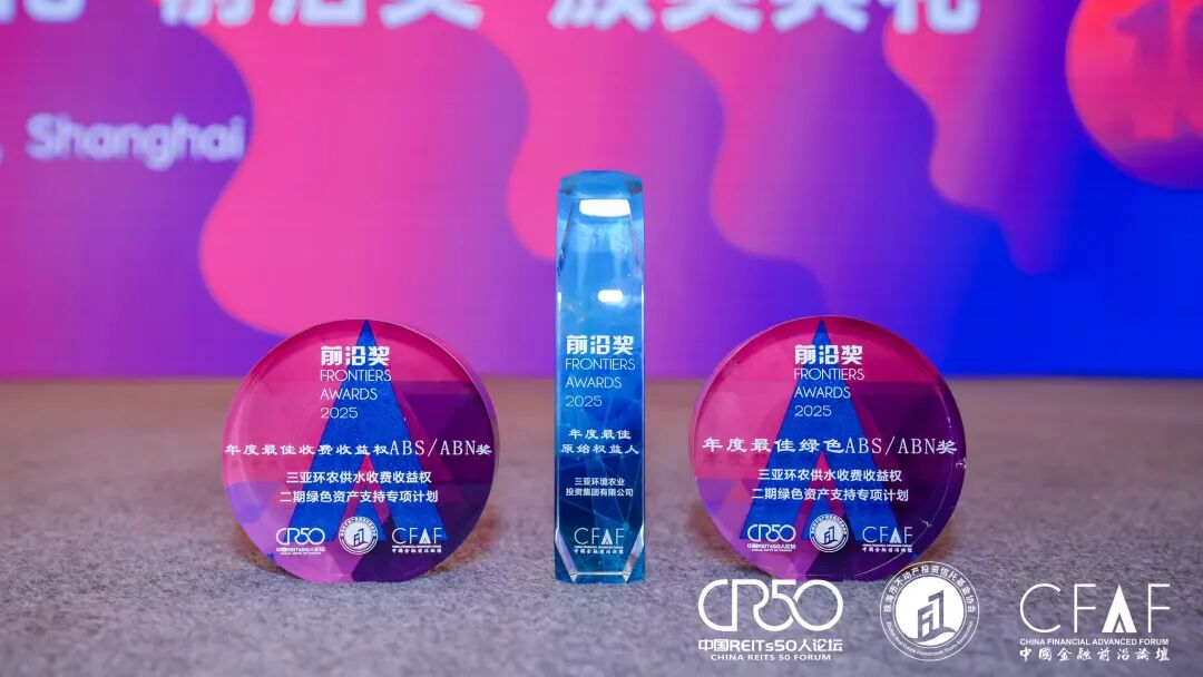 11月13日,在第十屆不動產(chǎn)證券化合作發(fā)展大會暨2025不動產(chǎn)證券化“前沿獎”頒獎典禮上,三亞環(huán)農(nóng)集團憑借“綠色供水收費收益權ABS項目”一舉斬獲三項核心榮譽,成為當晚備受矚目的焦點。集團總會計師孫建華代表公司上臺領獎。