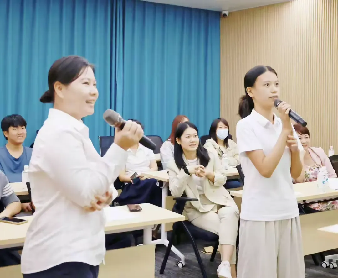 在互動(dòng)練習(xí)環(huán)節(jié),同事們兩人一組結(jié)對(duì),運(yùn)用剛剛學(xué)到的詞匯和句式進(jìn)行對(duì)話演練,隨后各組依次上臺(tái)展示。大家沉浸式投入角色,大膽表達(dá)交流。外教現(xiàn)場(chǎng)糾正發(fā)音誤區(qū)和表達(dá)不當(dāng)之處,提出優(yōu)化建議,幫助大家精準(zhǔn)提升語言應(yīng)用能力?,F(xiàn)場(chǎng)互動(dòng)氛圍熱烈,每一次精彩演示都贏得陣陣掌聲。