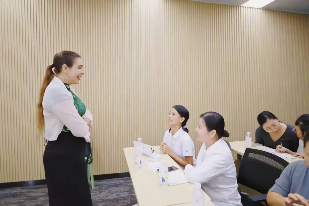 自由交流環(huán)節(jié)將活動(dòng)推向高潮。同事們自行選擇感興趣的話題,或圍繞業(yè)務(wù)合作、或探討亞沙會(huì)接待細(xì)節(jié)、或分享日常英語學(xué)習(xí)心得,主動(dòng)尋找交流伙伴暢聊。外教穿梭在各個(gè)交流小組中,主動(dòng)發(fā)起話題、耐心解答疑問,及時(shí)指導(dǎo)大家的表達(dá)邏輯與用詞準(zhǔn)確性,讓大家在無壓力的自由溝通中鞏固所學(xué)知識(shí),打破“開口難”的壁壘。